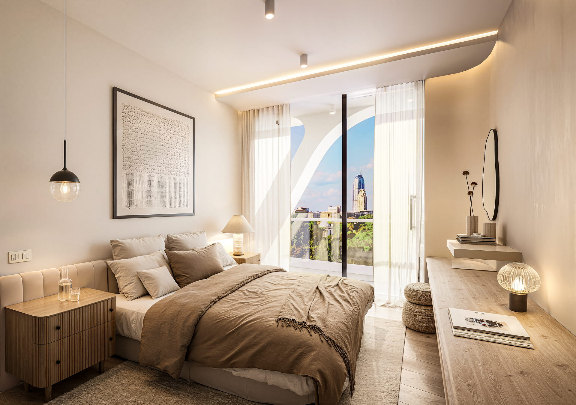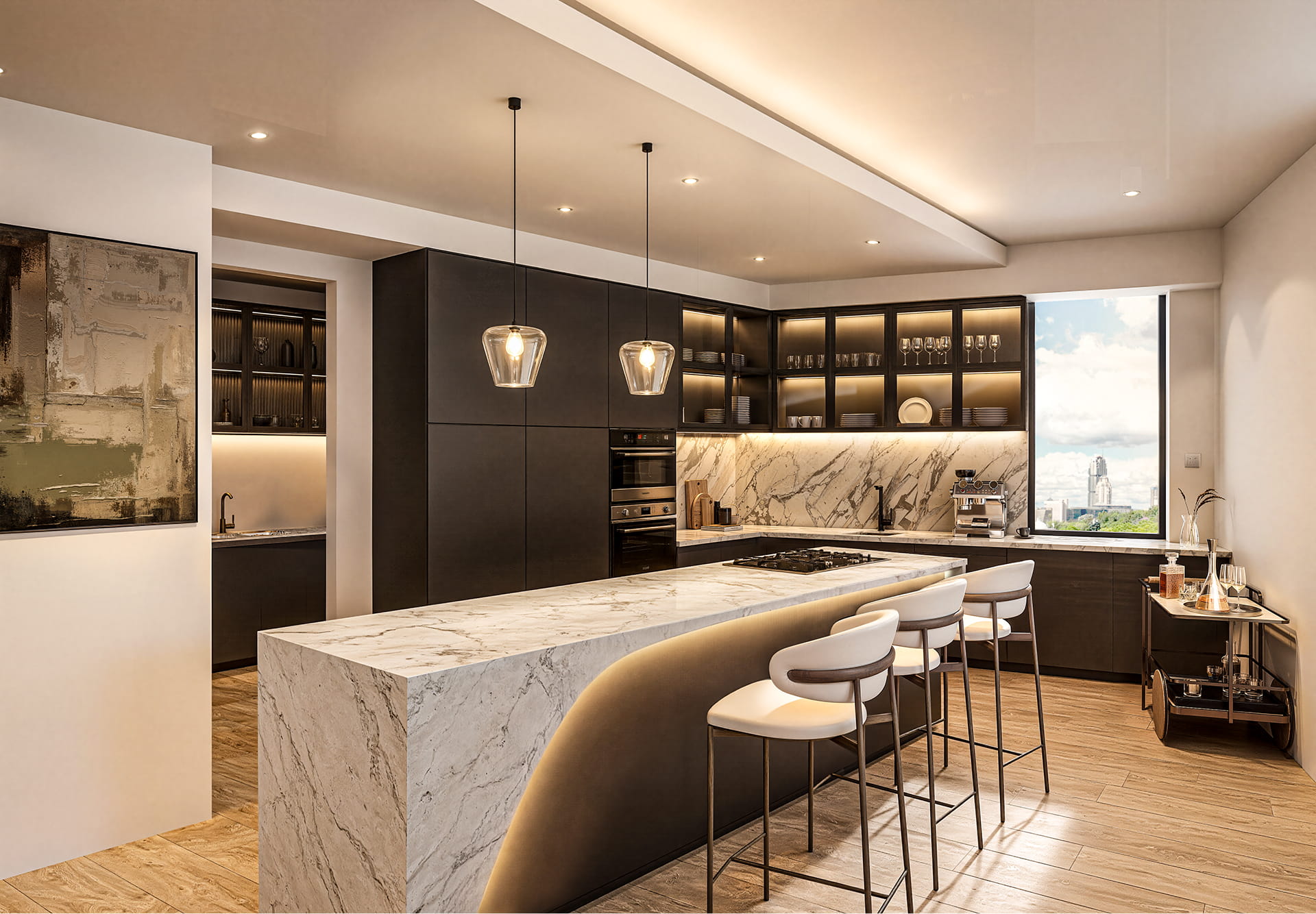 Every interior is finished with high-quality fittings - stone countertops, SMEG appliances, curated cabinetry, and premium bathroom fixtures - with optional customisation packages available for those seeking a more personalised palette